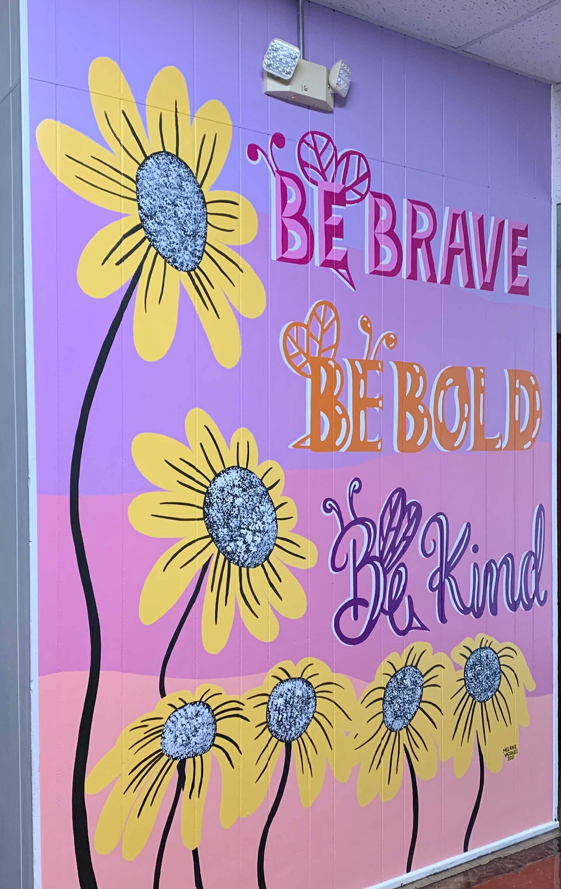 Midlothian, IL, “Be Brave, Be Bold, Be Kind,” donated mural, 2021.